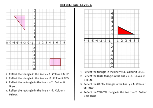 Students need to give a nice reflection (23 sentences)!Use for Distance Learning This activity has 12 questions about reflections across the x and y axis The students are given a graph They read they ordered pair off the graph and reflect it across the x or y axis The 12 problems are multiple choice problemsThis is a digital copy to use with Google Share through pinterest File previews pdf, 975 KB Worksheet for students to use to reflect shapes in the x and y axes Also reflecting in the line y=x (diagonal line bottom left to top right) Tes classic free licence